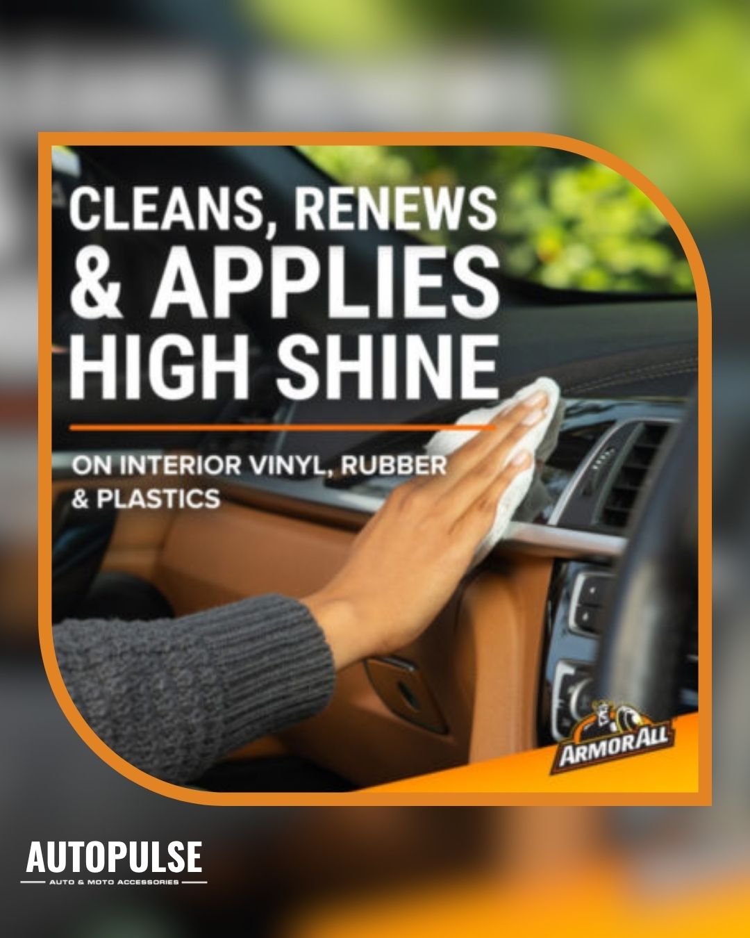 Мокри кърпи за табло Armor All (Dashboard Wipes) са ефективно средство за бързо и лесно почистване и защита на таблото и други повърхности във вашия автомобил. Специално формулирани за почистване на винил, пластмаса и гуми, тези кърпи гарантират по-приятен и поддържан вид на интериора без излишен блясък и мазни следи.