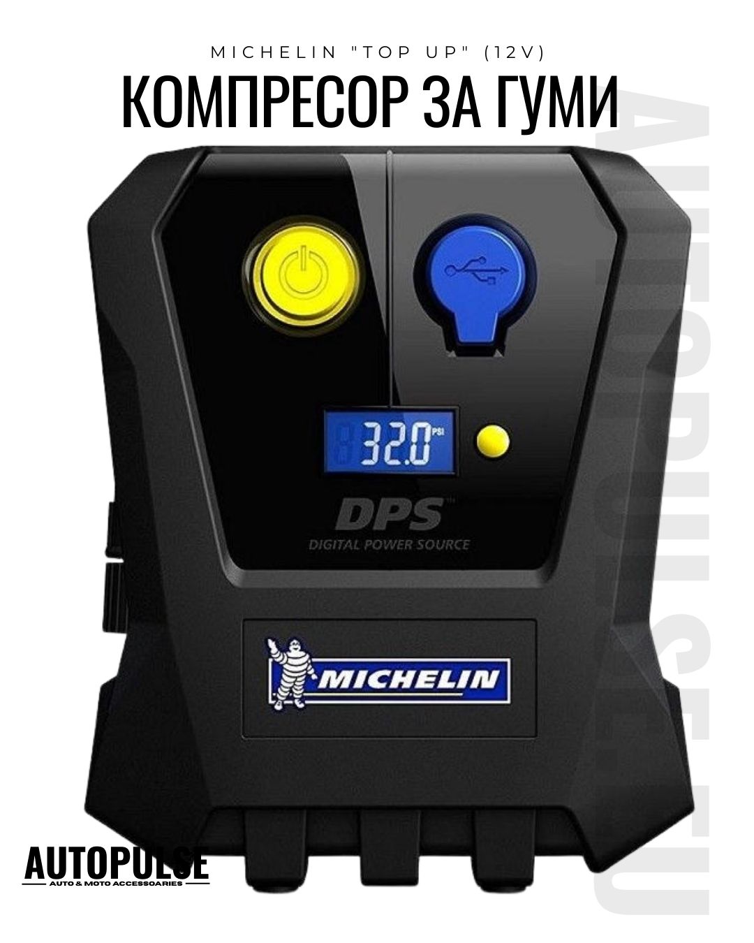 Компактен цифров компресор за гуми Michelin Top Up 12V - Автоматично напомпване с манометър.Преносим, Мощен, Надежден