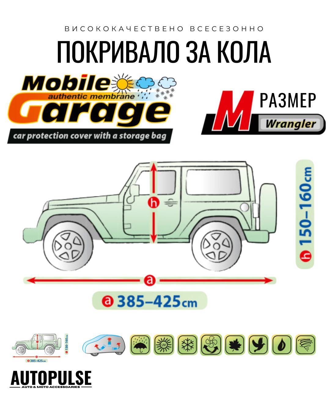 Ако сте собственик на Jeep Wrangler с дължина от 385 до 425 см (включително 2-врати модели), знаете колко важно е да защитите офроуд автомобила си от непредсказуемо време и атмосферни влияния. Покривалото Kegel Mobile Garage M предлага премиум 4-слойна защита с пълна водоустойчивост и висока паропропускливост, специално адаптирана за Jeep Wrangler с височина от 150 до 160 см.