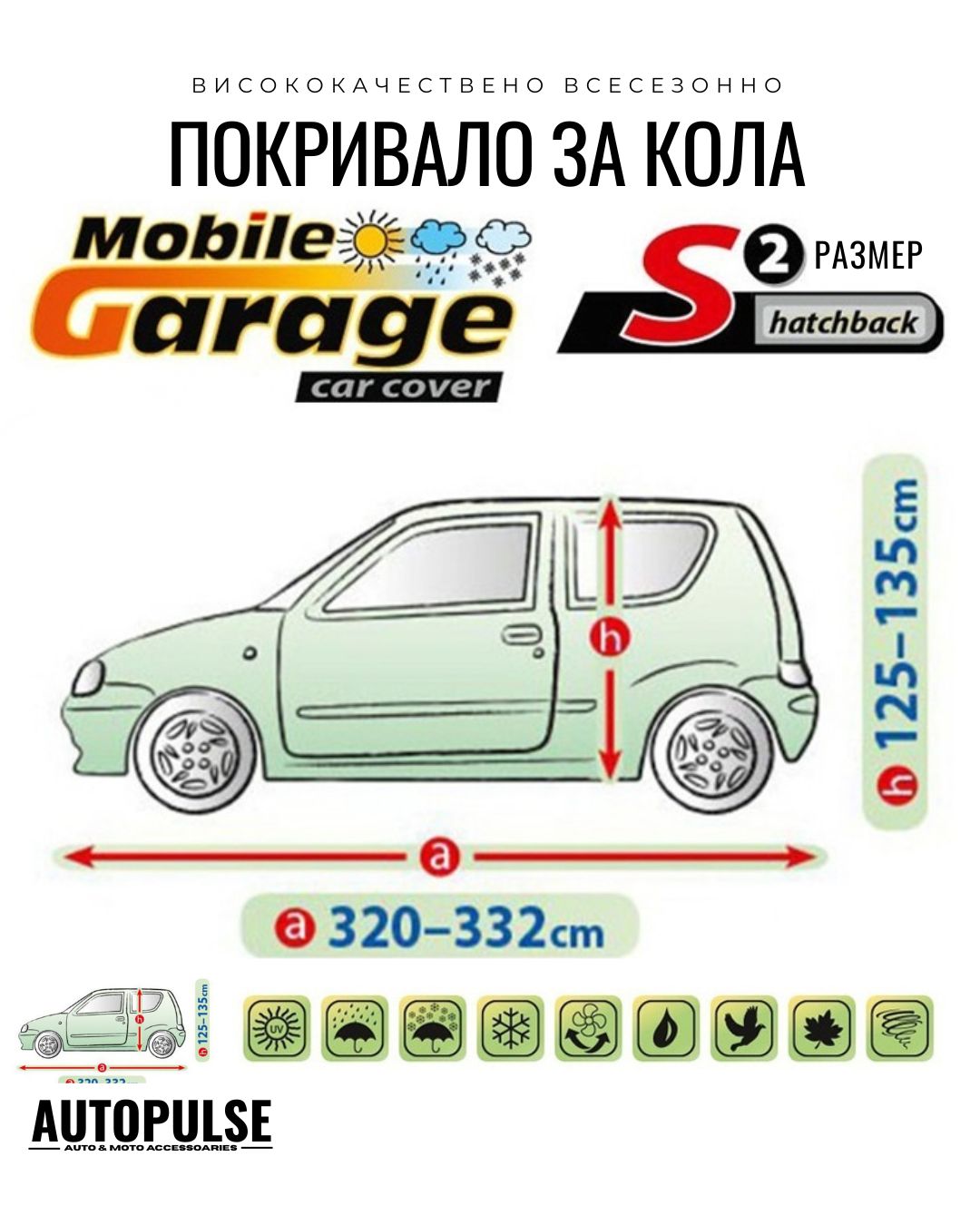 Ако сте собственик на компактен хечбек с дължина от 320 до 332 сантиметра (като модели като FIAT Cinquecento или LADA Oka), знаете колко важно е да защитите градския си автомобил от непредсказуемо време и атмосферни влияния. Покривалото Kegel Mobile Garage S2 предлага премиум 4-слойна защита с пълна водоустойчивост и висока паропропускливост, специално адаптирана за хечбек с височина от 125 до 135 сантиметра.