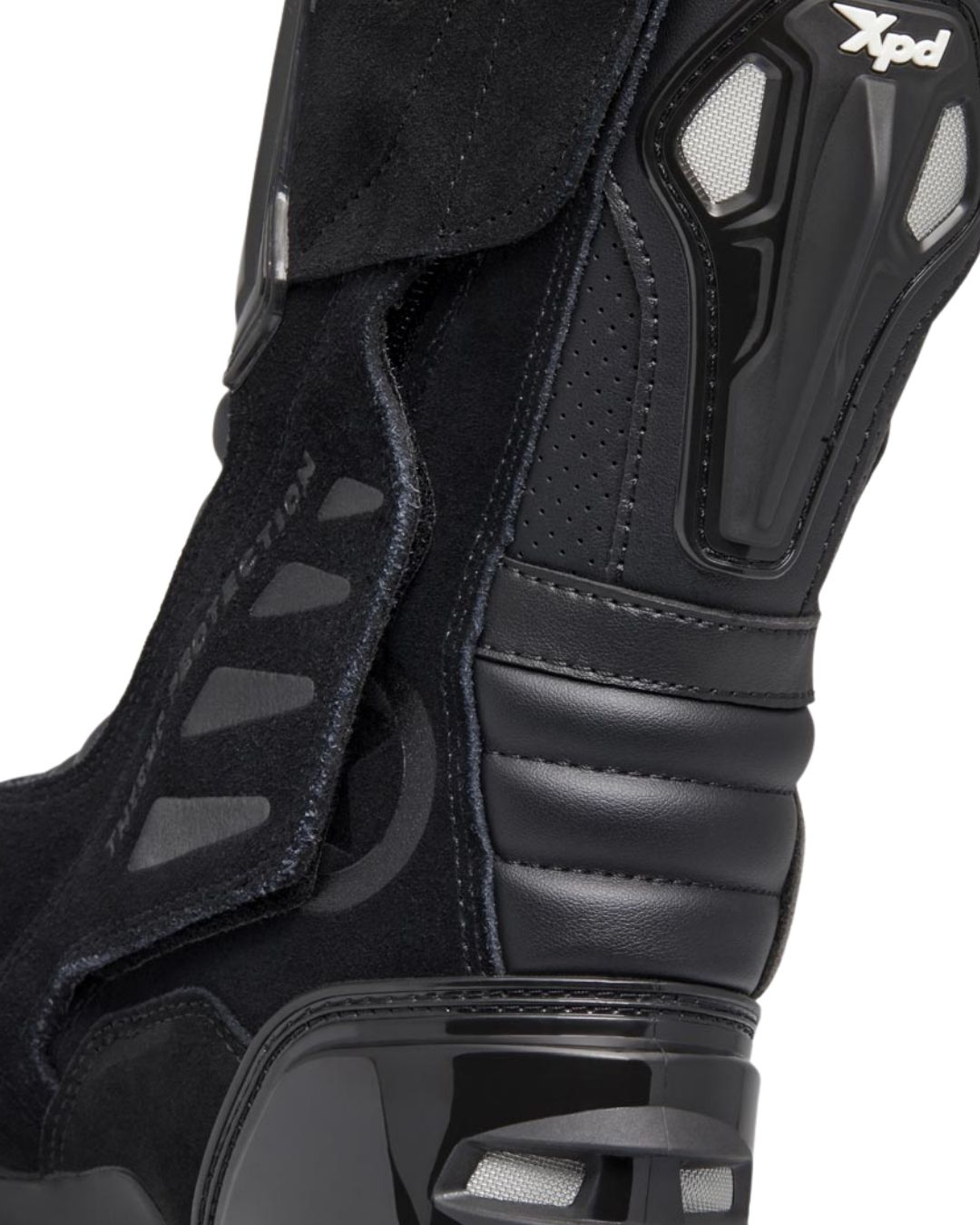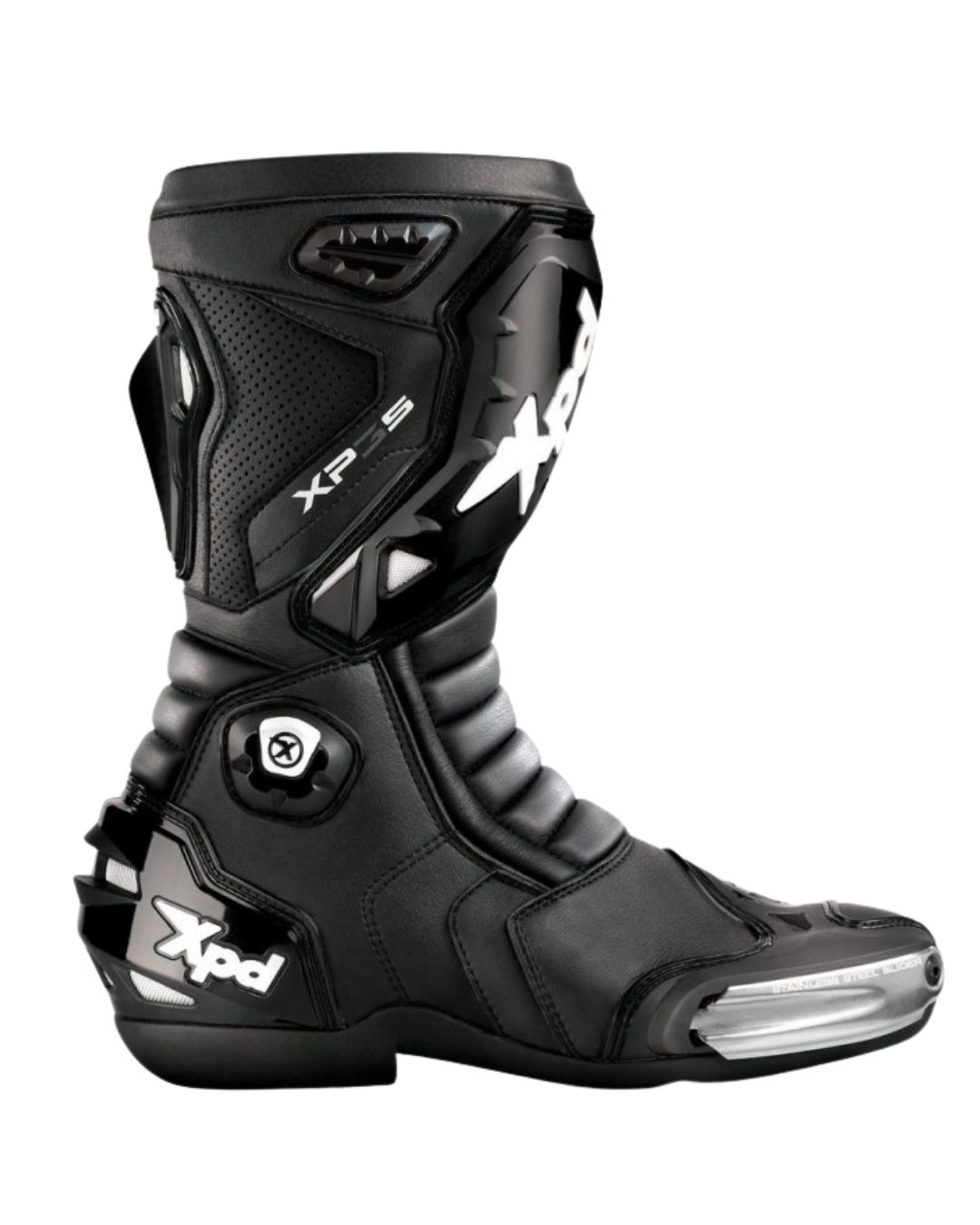 XPD XP3-S Black са еволюцията на легендарната серия „3“ – най-удобните и универсални състезателни мото ботуши в гамата на XPD. Изцяло черният дизайн изглежда агресивно и професионално на всяка спортна машина. Специално създадени за средно и високо ниво карачи, XP3-S са идеални за писта, спортен туринг и интензивно каране. Сменяем слайдер, полиуретанови защити, вентилация, 3D мрежа и високо ниво на комфорт правят този модел предпочитан от много професионални и аматьорски карачи в Европа през 2025–2026 г.