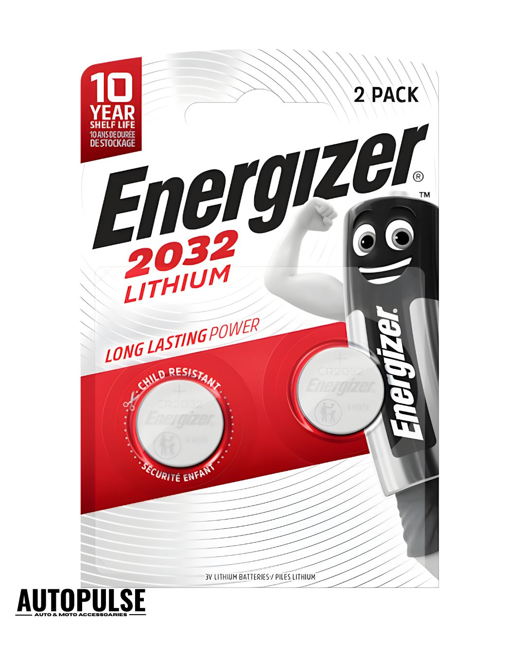 Изберете Energizer 2032 Lithium 3V за универсална, дълготрайна мощност и допълнително спокойствие, благодарение на детски защитената опаковка. Осигурете си универсалния CR2032! Добавете батерията Energizer 2032 сега и заредете всичките си малки уреди!