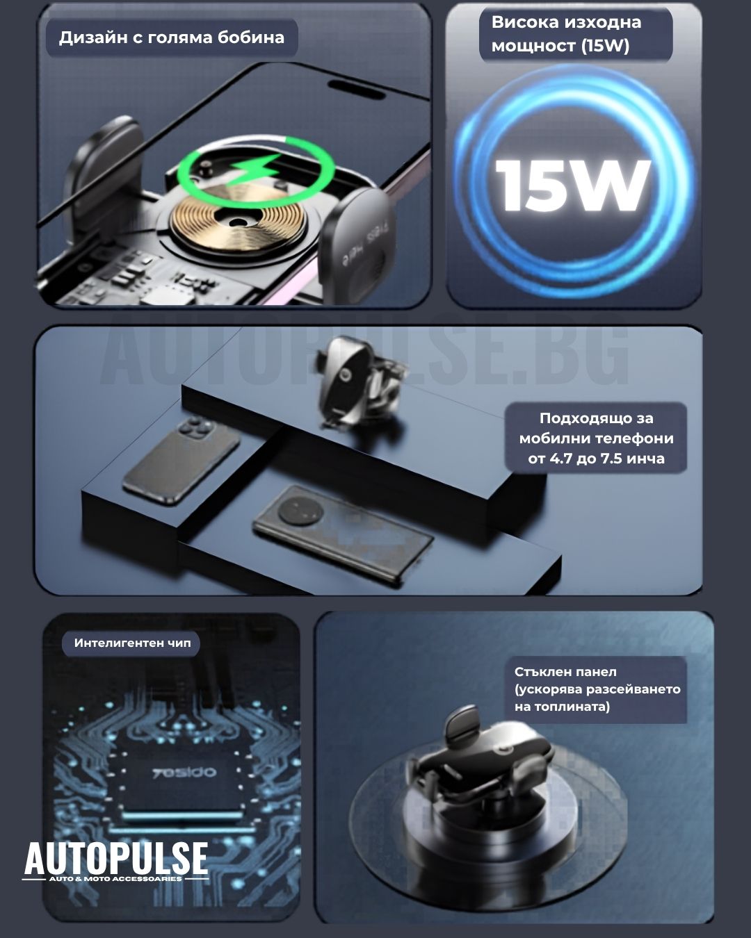 Интелигентно 15W Зареждане и Универсален Монтаж за Сигурно Шофиране