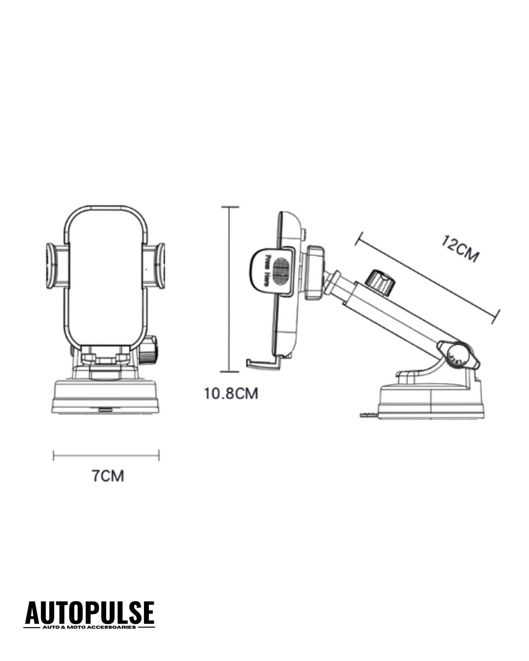 - Поставяне: Поставете телефона в държача. Челюстите ще го фиксират здраво, а безжичното зареждане ще започне автоматично.