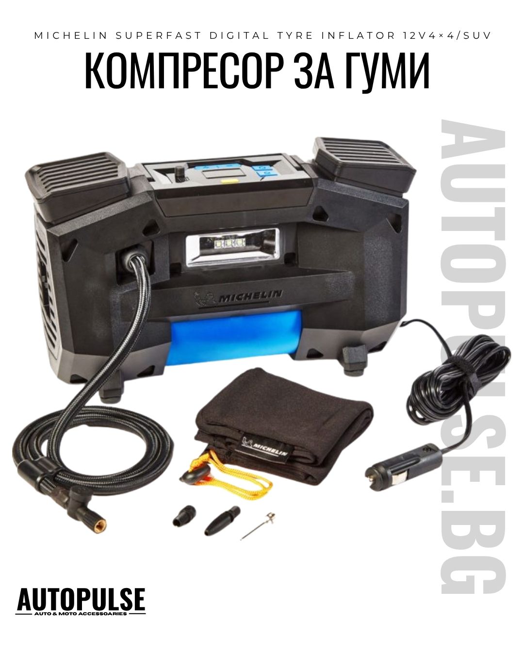 - Име на Продукта: Michelin Programmable Superfast Digital Tyre Inflator 12V