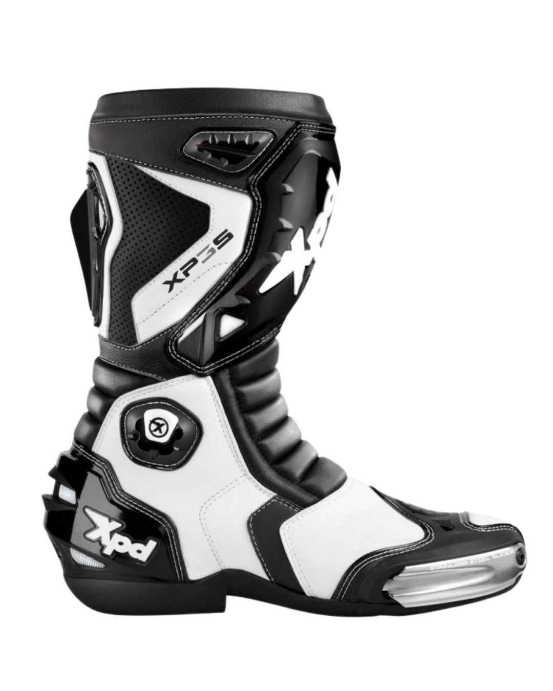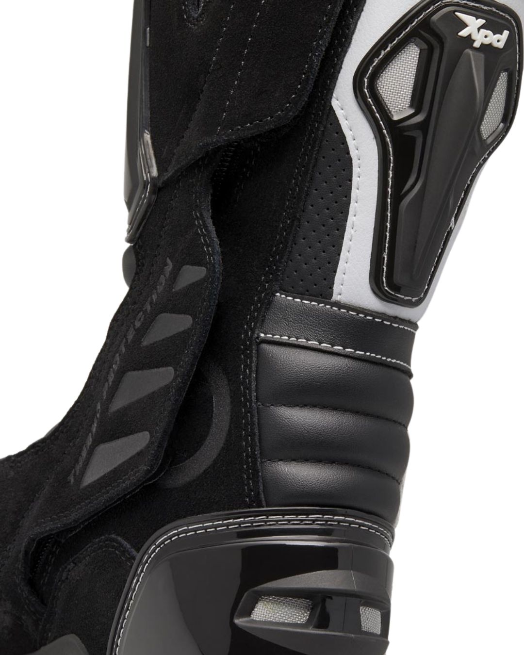 XPD XP3-S Black/White са еволюцията на бестселъра от серията „3“ – най-удобните състезателни мото ботуши в колекцията на XPD. Специално създадени за средно и високо ниво спортни карачи, тези ботуши са идеални както за писта, така и за спортен туринг. Сменяем слайдер, полиуретанови защити, солидна конструкция, вентилация и високо ниво на комфорт правят XP3-S перфектния избор за всеки, който иска максимална производителност и сигурност. В черно-бяла комбинация те изглеждат агресивно и стилно на всяка спортна машина.