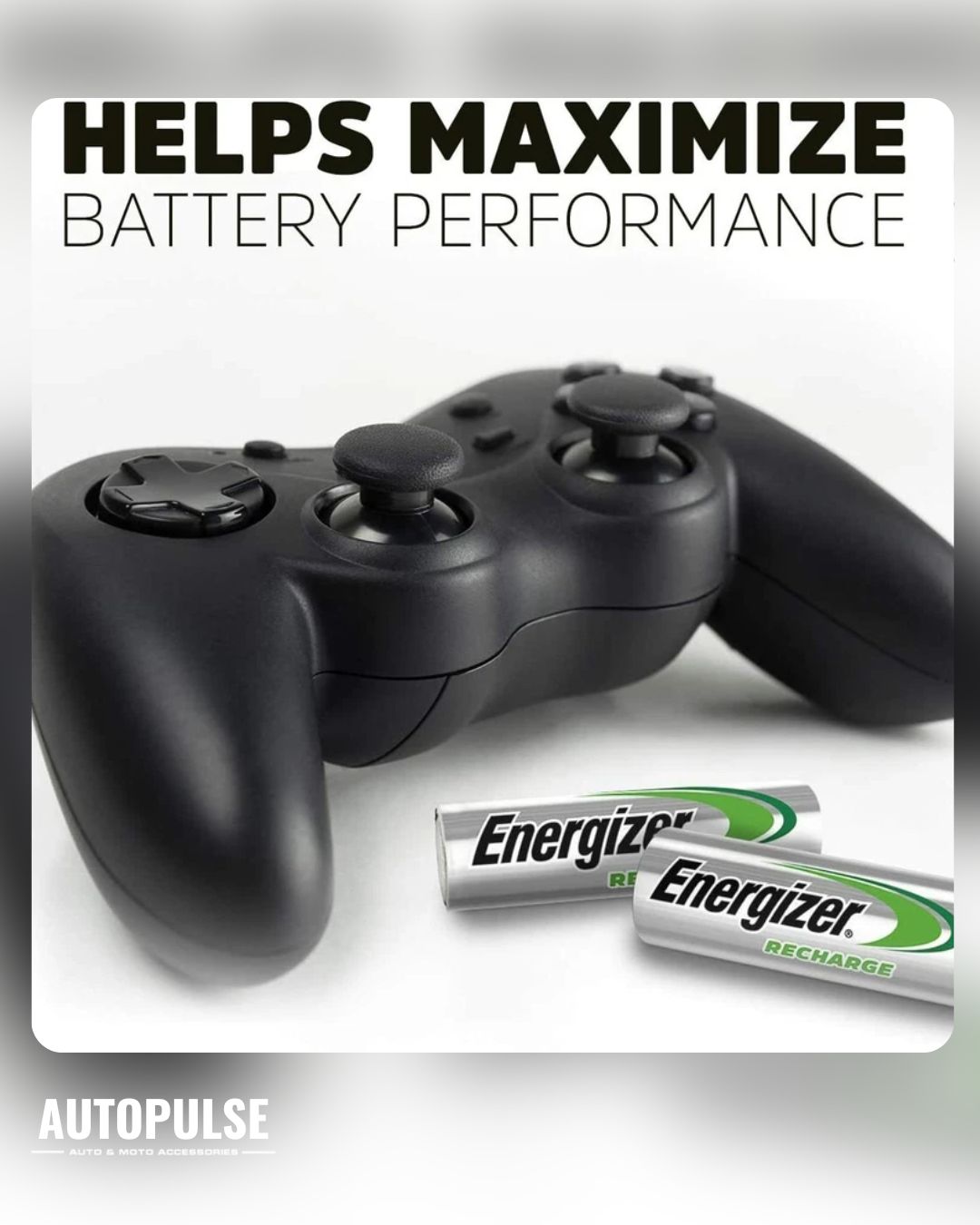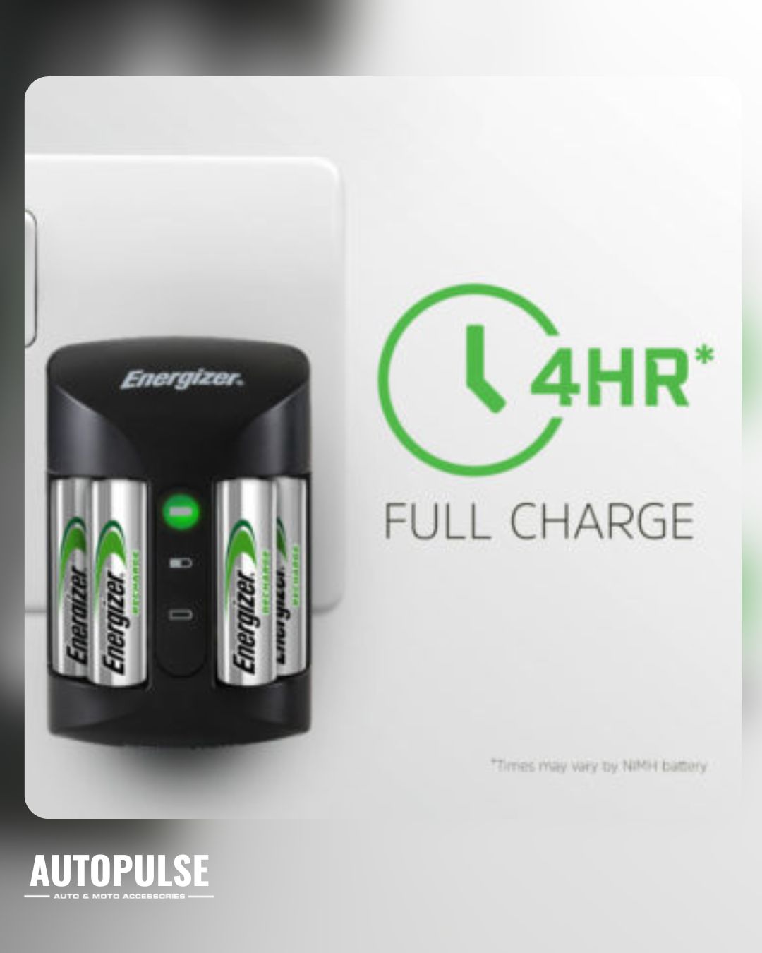 Когато безжичната мишка спре, играчката замълчи или фотоапаратът угасне точно преди важния кадър - Energizer Recharge Pro е решението, което ви връща в играта за нула време. Това е най-бързото и най-надеждно зарядно за Ni-MH AA/AAA батерии на Energizer - зарежда до 4 батерии едновременно за само 4 часа и идва с 4 предварително заредени батерии AA 2000mAh Power Plus.